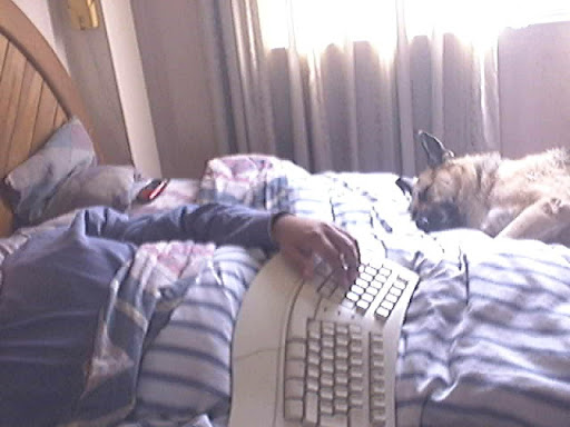 La foto que incluyo era de la época en que vivía conmigo una gata, que ahora esta, junto con la foxterrier Cokie, con mi ex-esposa. Extraño a la gatita, pues le gustaba hacer su cama encima de mi pecho por las noches. Bueno, cosas de la vida.